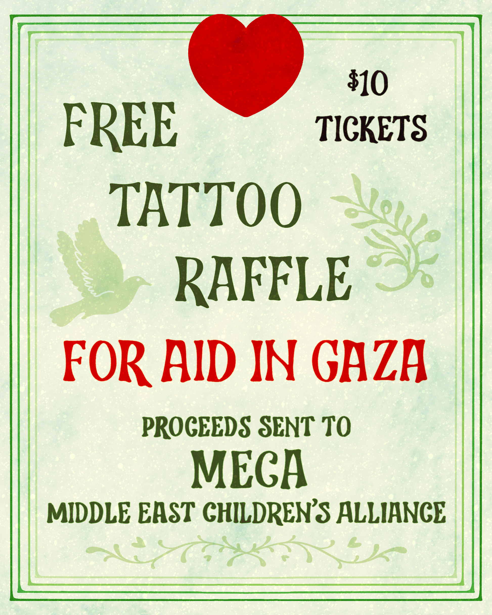 proceeds will be sent to MECA middle eastern children’s alliance to get aid to the children of Gaza