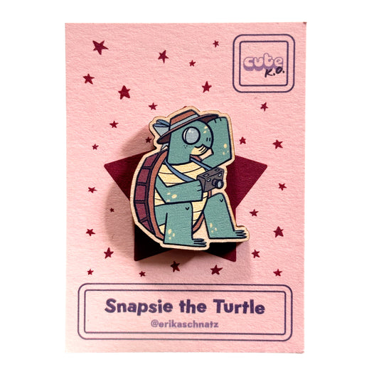 Snapsie the Turtle Wooden Pin