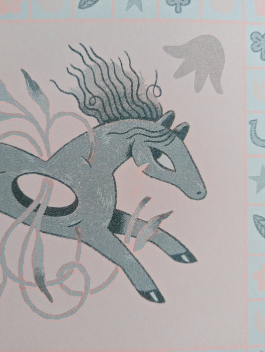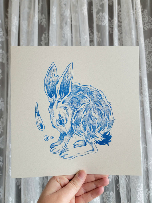 Blue Bunny Party riso print