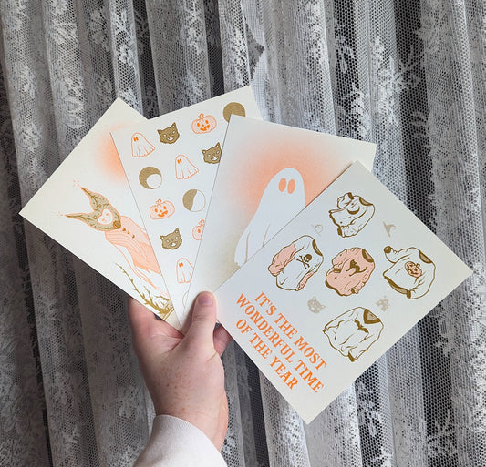 soft halloween risograph postcard set