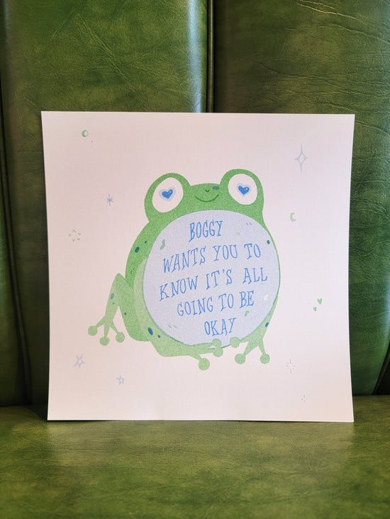 8.5 by 8.5in print in kelly green and cornflower designed by @lemon.droop