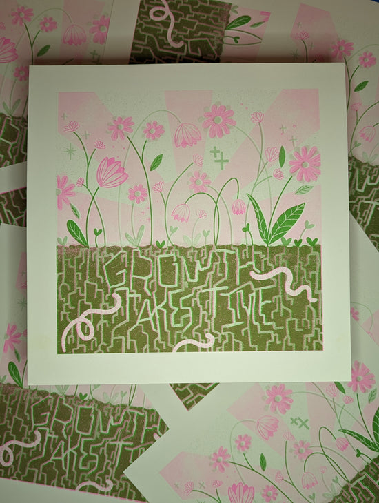 11x11 fluo pink and kelly green riso print for the Hope Blooms gallery show by @jessi_buck