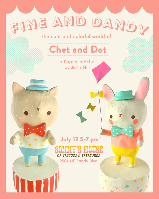 Come experience the cute and colorful world of@chetanddotin papier-mâché by Jenn Hill!
