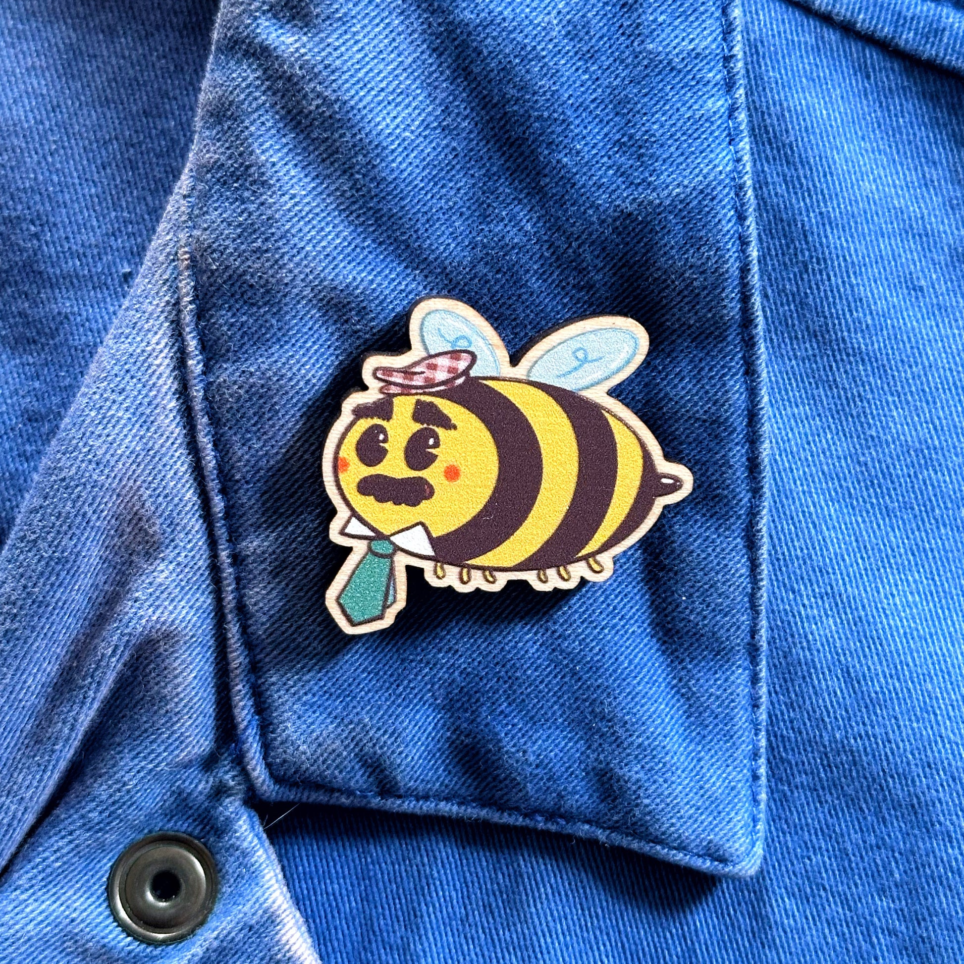 It’s 2022 Cute K.O. competitor Bumblebuzz wearing his lil’ tie and cap! This 1.25” full-color custom-printed wooden pin is made from responsibly sourced, fast-growing maple veneered MDF. It’s .125” thick and has a white star-shaped rubber backer for extra cuteness. Backed by a star-covered card on pink cardstock with Bumblebuzz facts on the card back!
