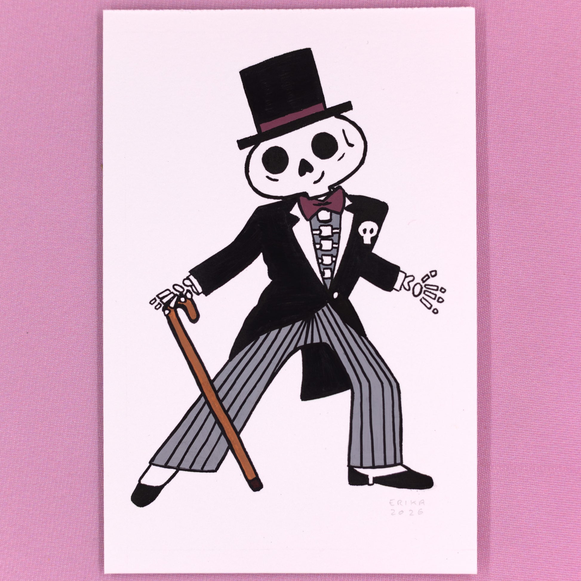 Posca paint pens on vellum bristol board of Cute K.O. 2020 champion Creakum T. Bones. Measures 4" x 6" unframed, 5.25" x 7.25" framed