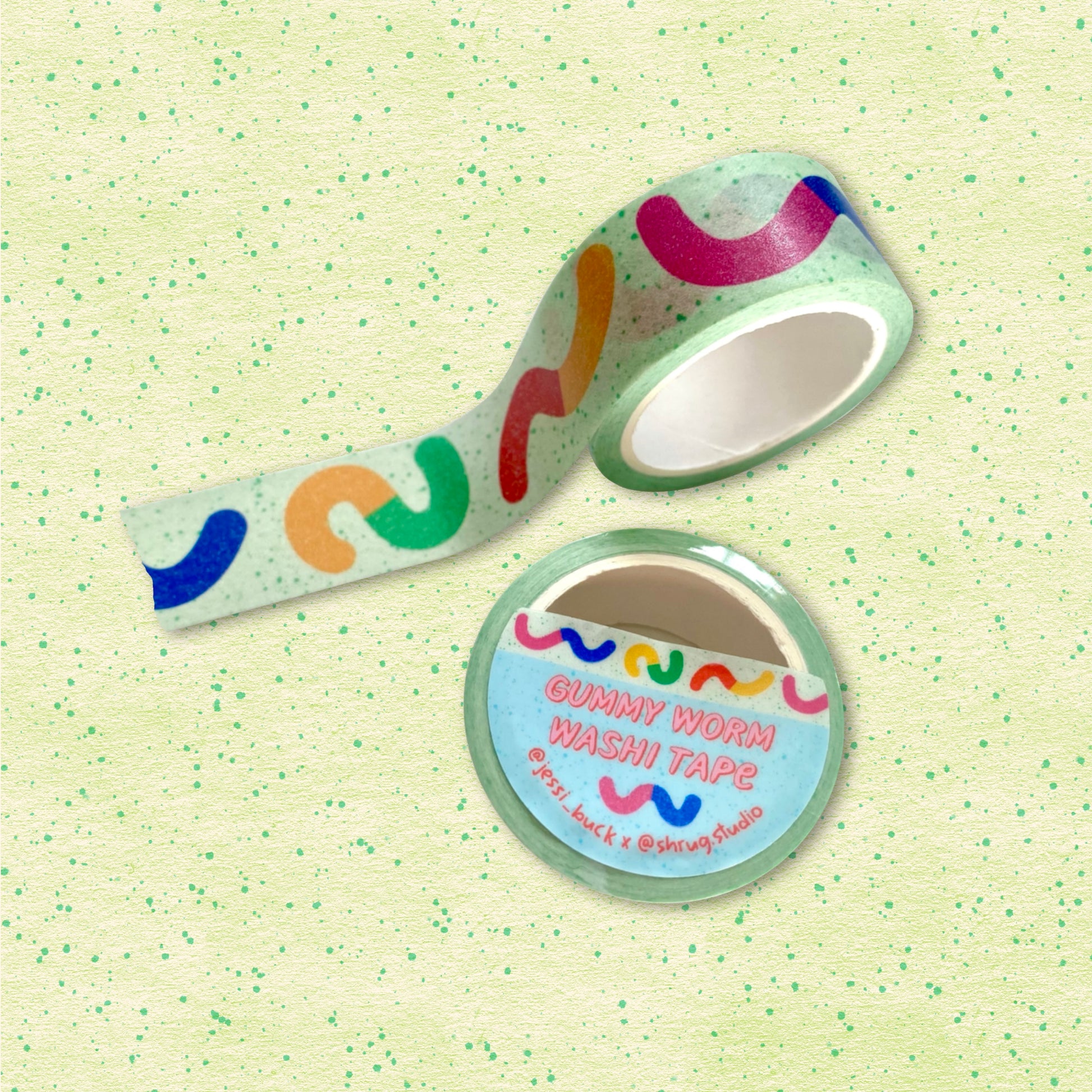 Sweets, rainbow colors, and worms all in one tape? Yes please! 5 meter roll of 2cm washi tape.