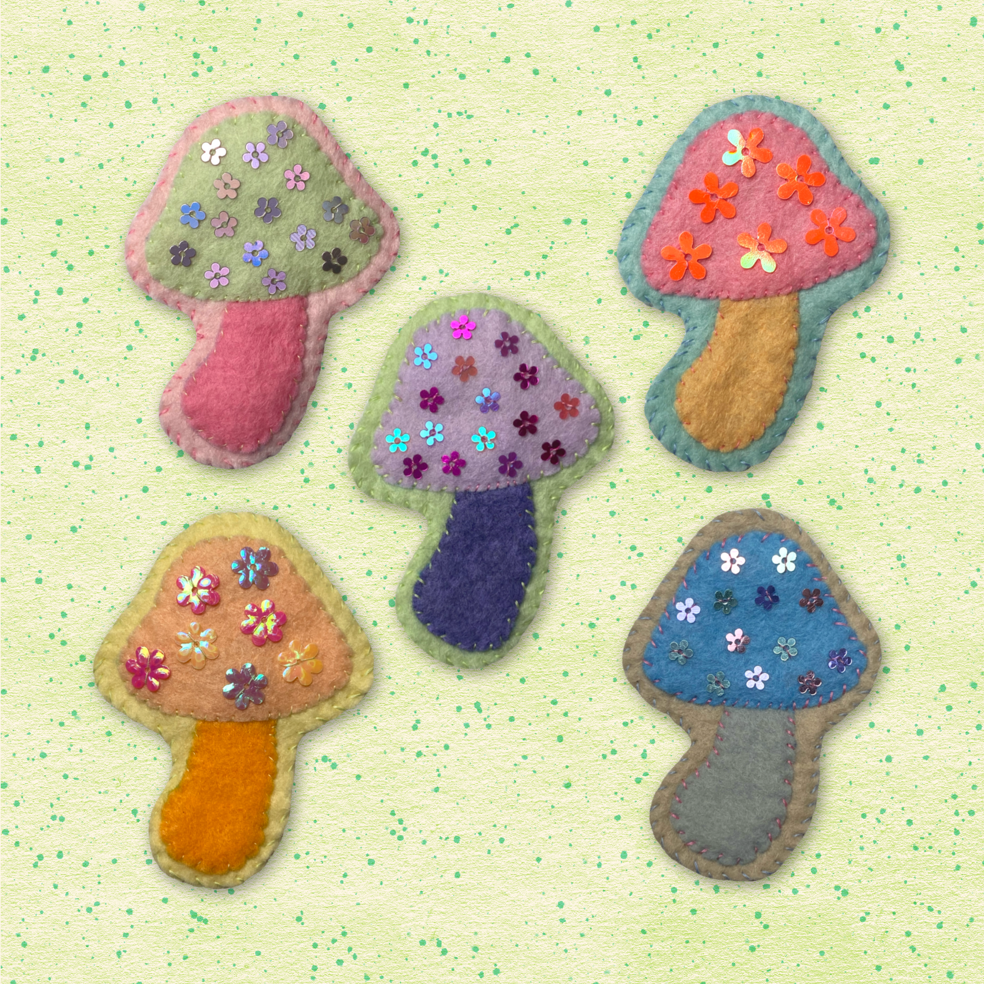 Hand-Stitched Mushroom Pins