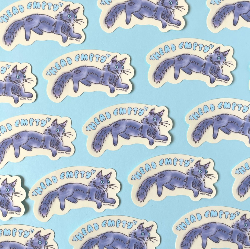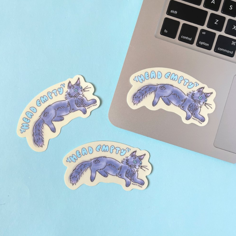 A vinyl-laminated, illustrated sticker. This sticker is waterproof but not recommended for outdoor use. Size: 2.2” x 3.3”