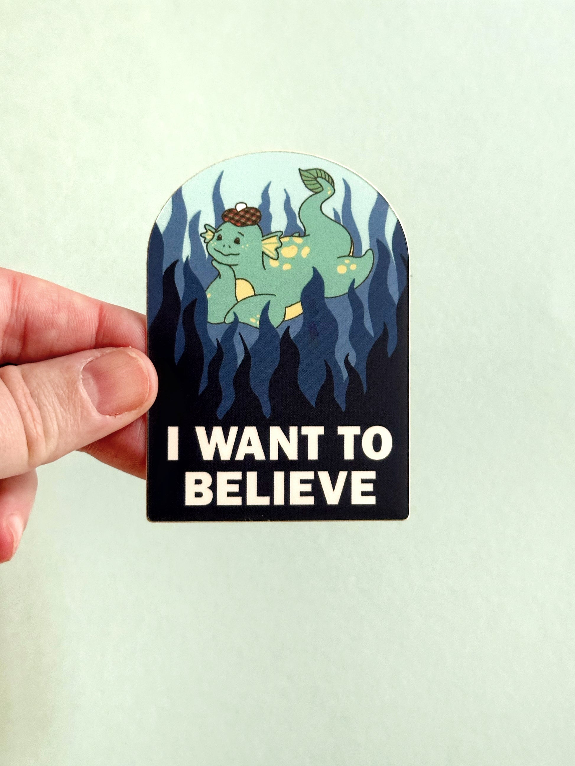 This 3 inch matte vinyl sticker features 2025 Cute K.O. champion Nessie and the text “I Want To Believe.” These stickers are coated with a UV resistant laminate and are durable for 5+ years outdoors. They are also waterproof, sun proof, tear proof, dishwasher safe, and microwave safe.