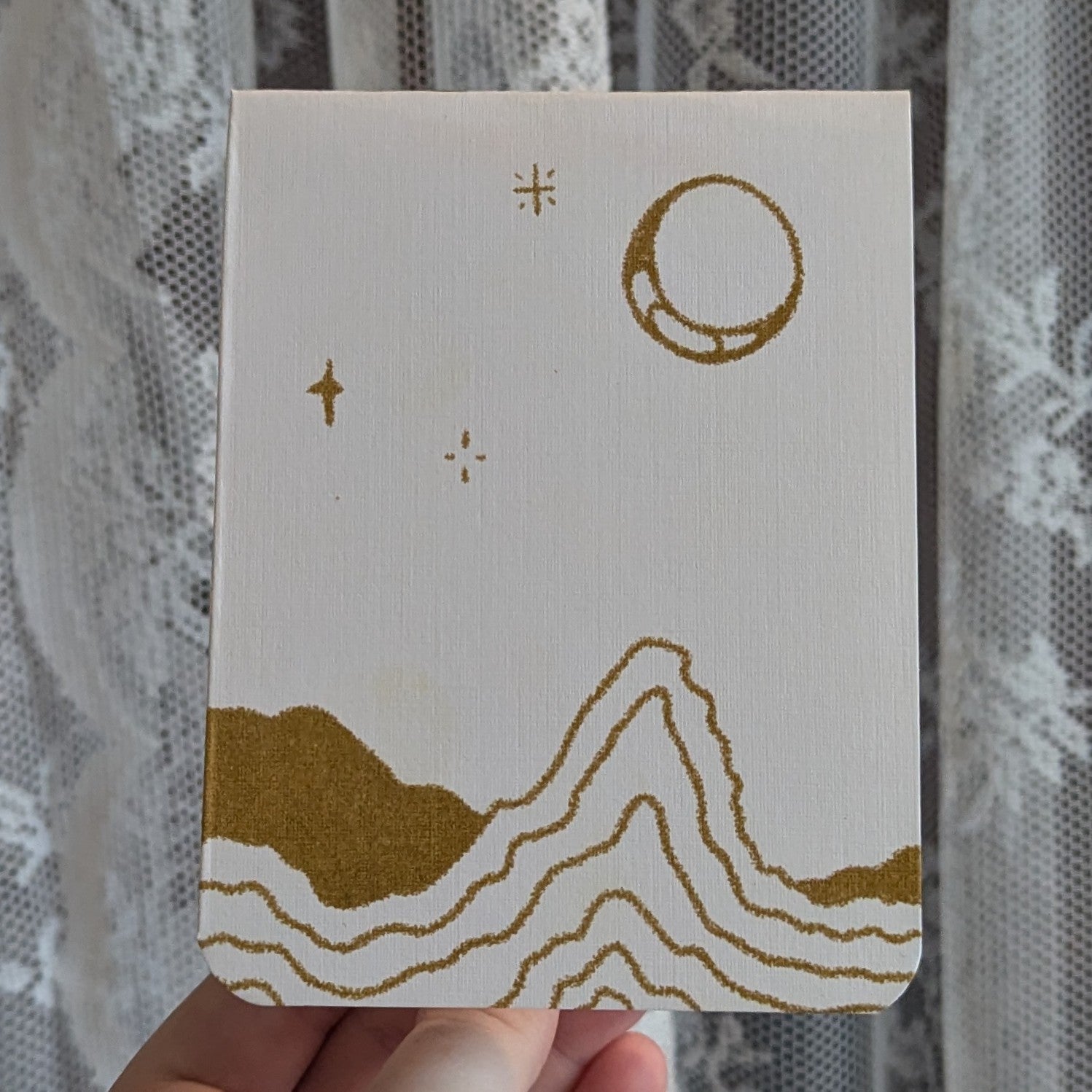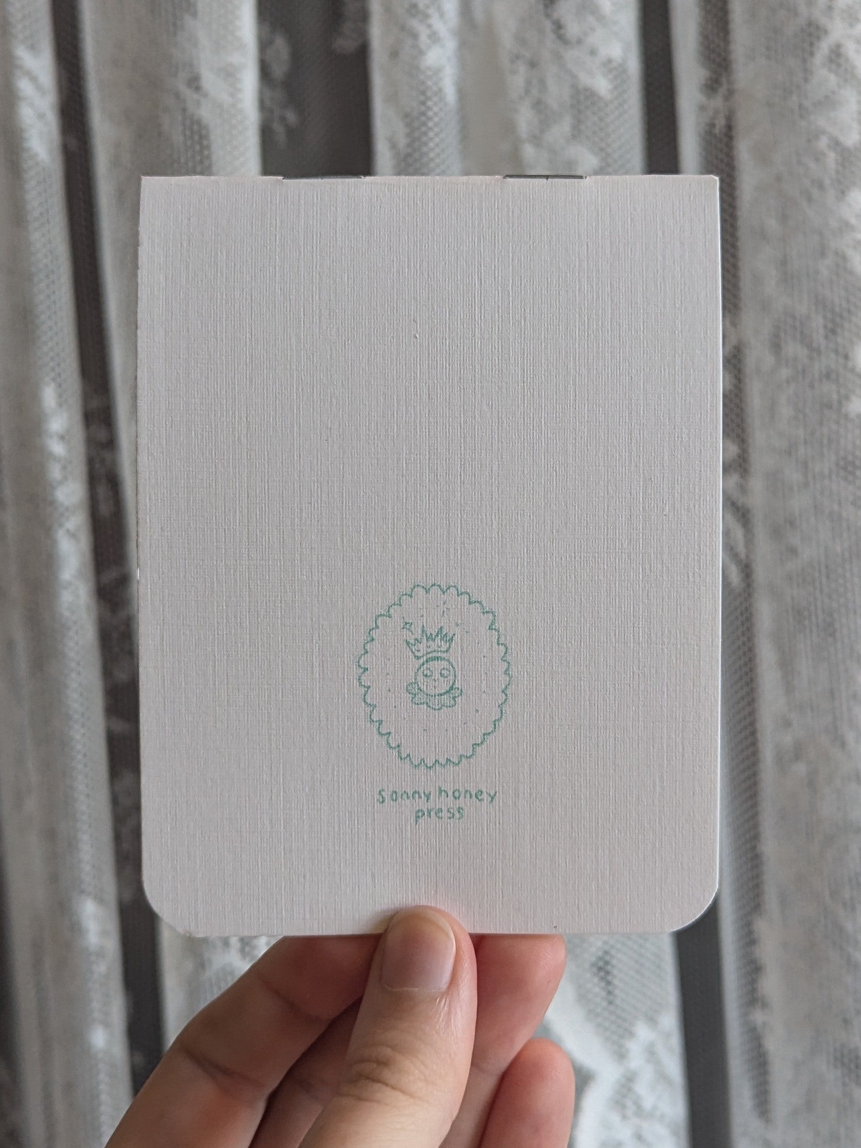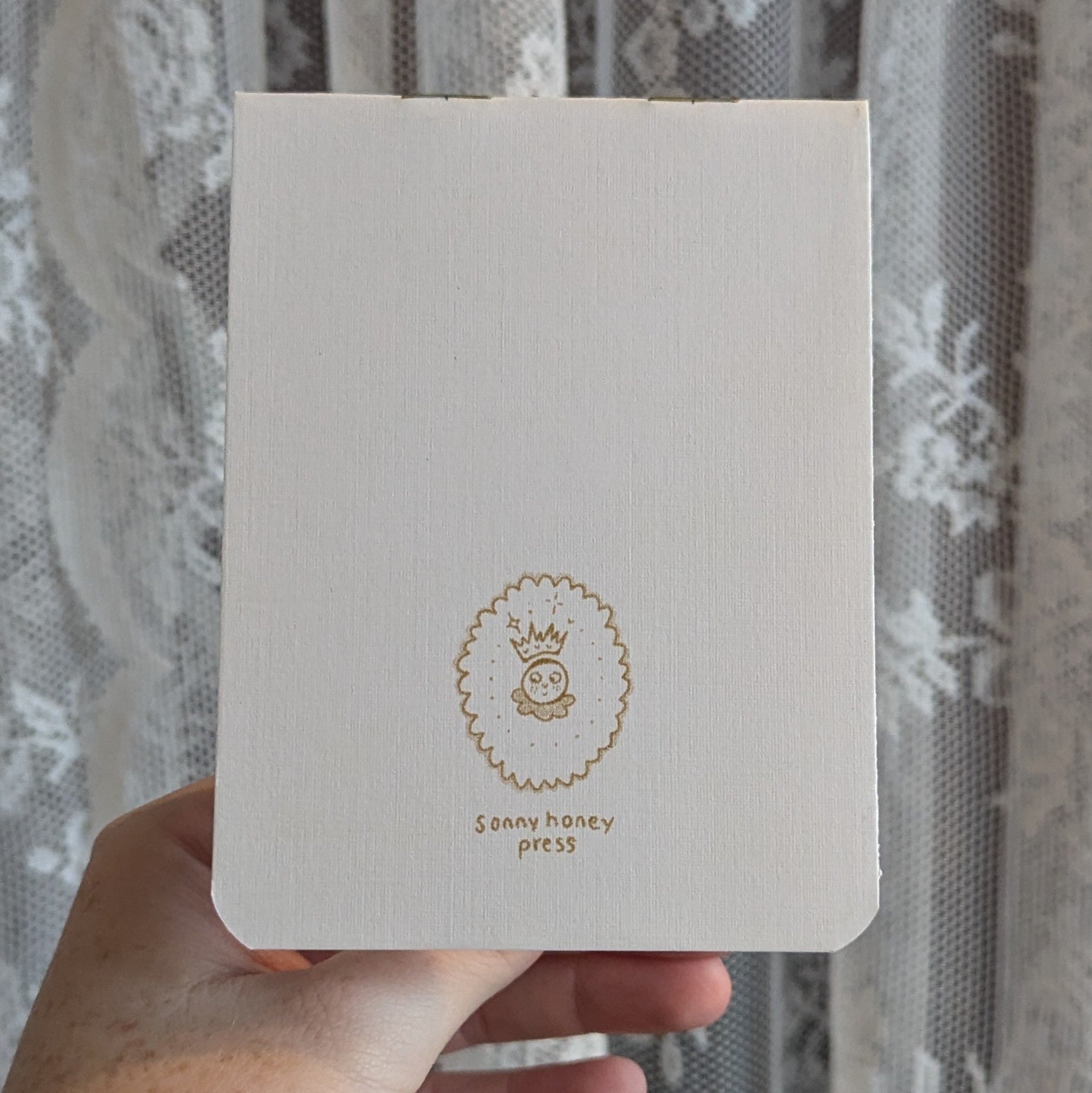 3.5 by 4.75in hand bound risograph printed notebooks with 8 internal pages