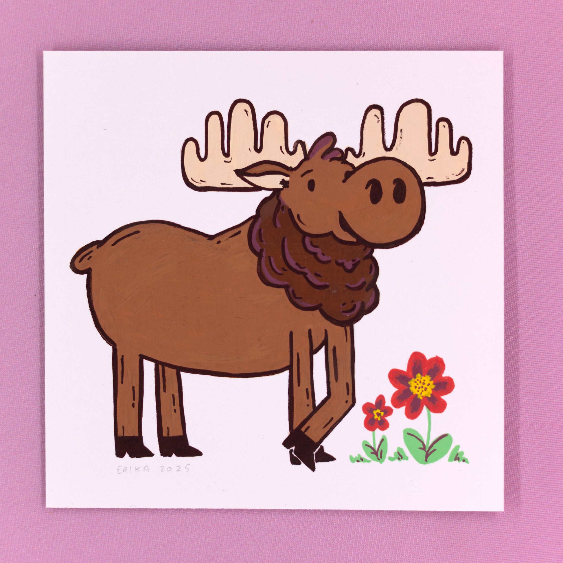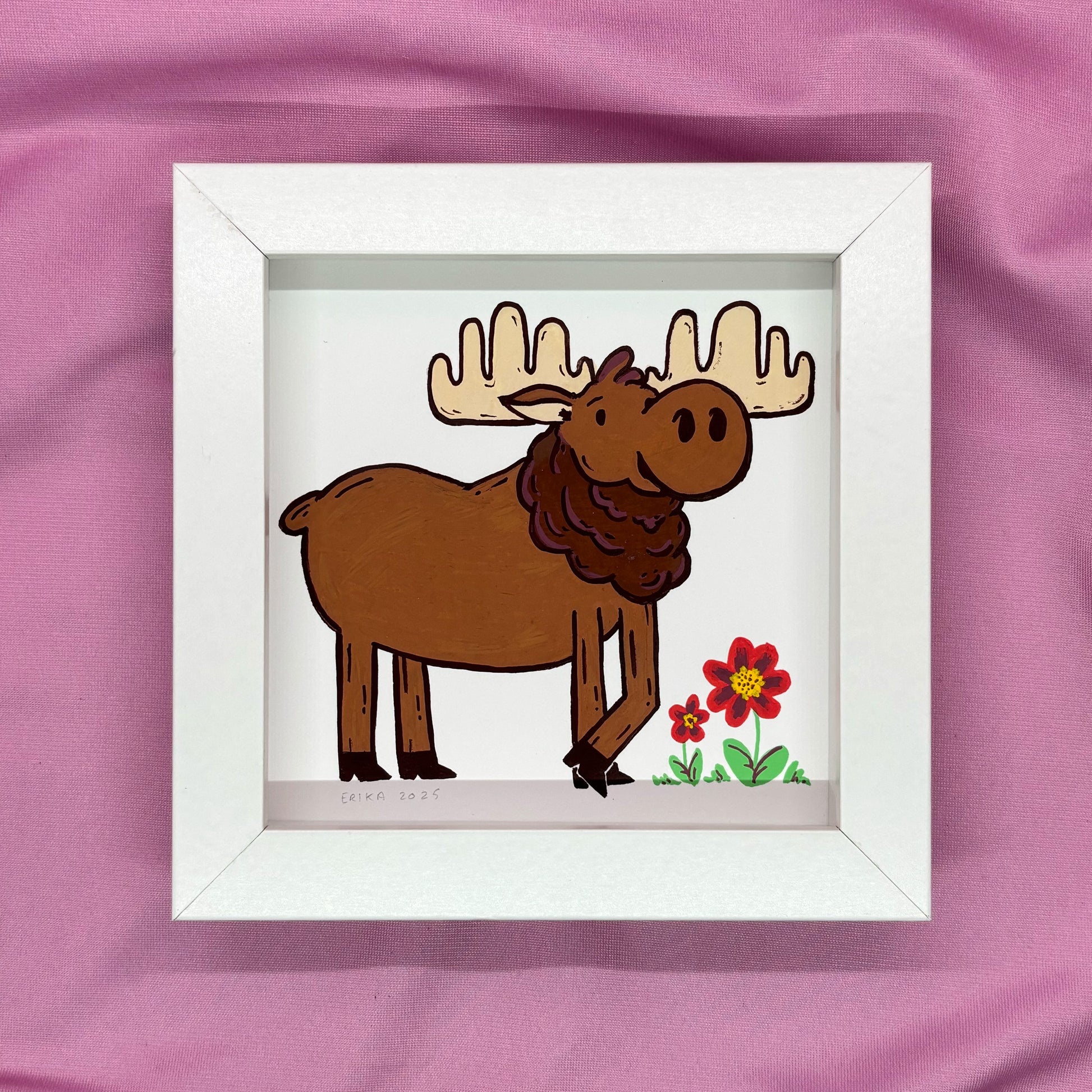Posca paint pens on vellum bristol board of Cute K.O. 2023 competitor Moorice. Measures 5" x 5" unframed, 5.75" x 5.75" framed