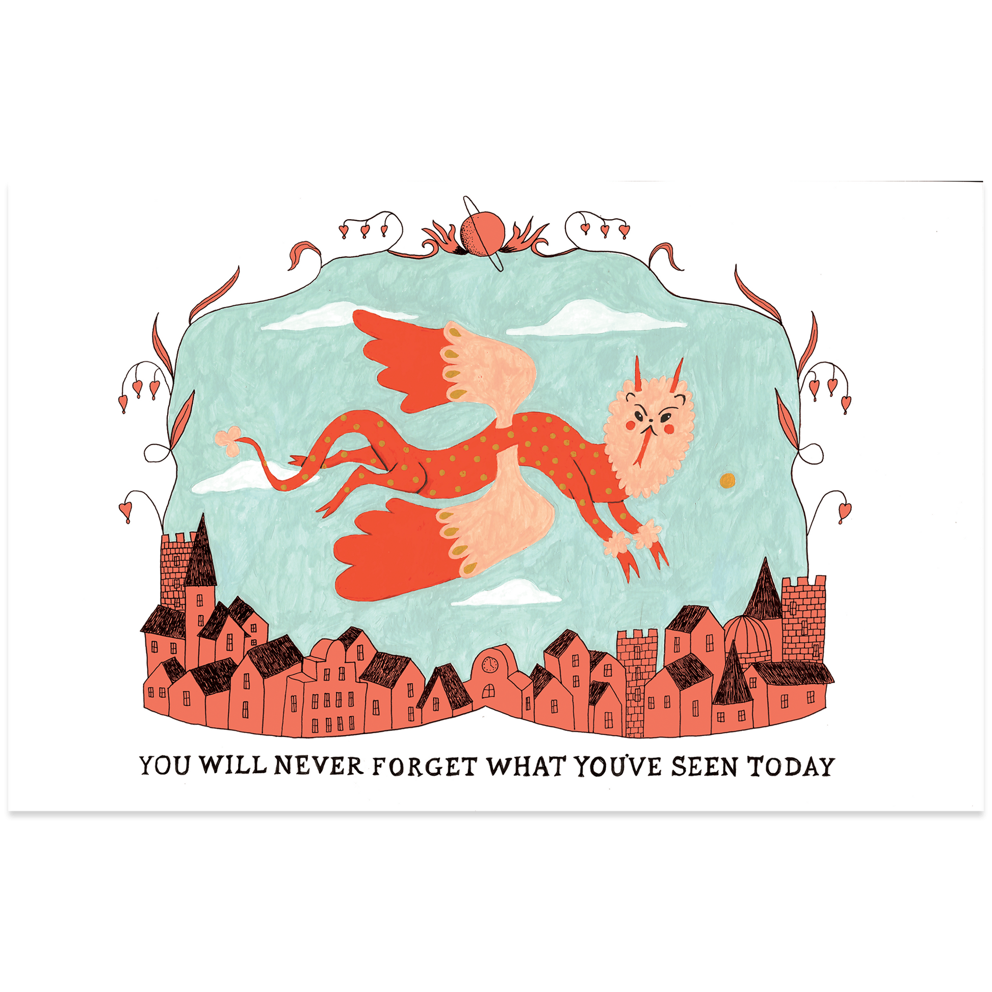 Print of a monster flying over a village