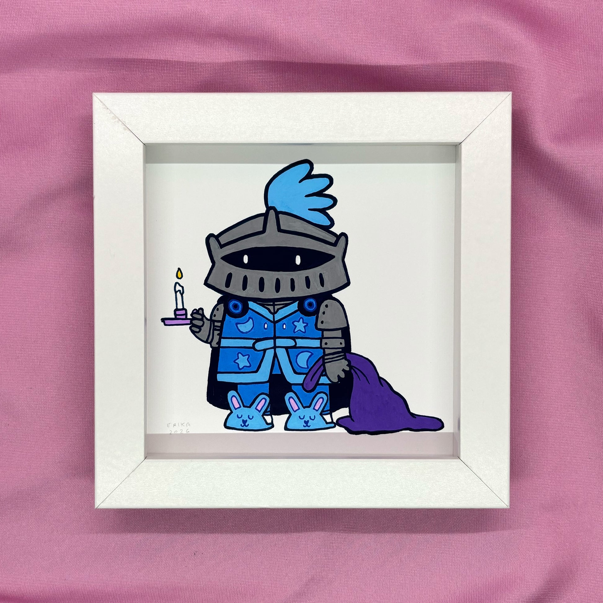Posca paint pens on vellum bristol board of Cute K.O. 2024 champion Night Knight. Measures 5" x 5" unframed, 5.75" x 5.75" framed