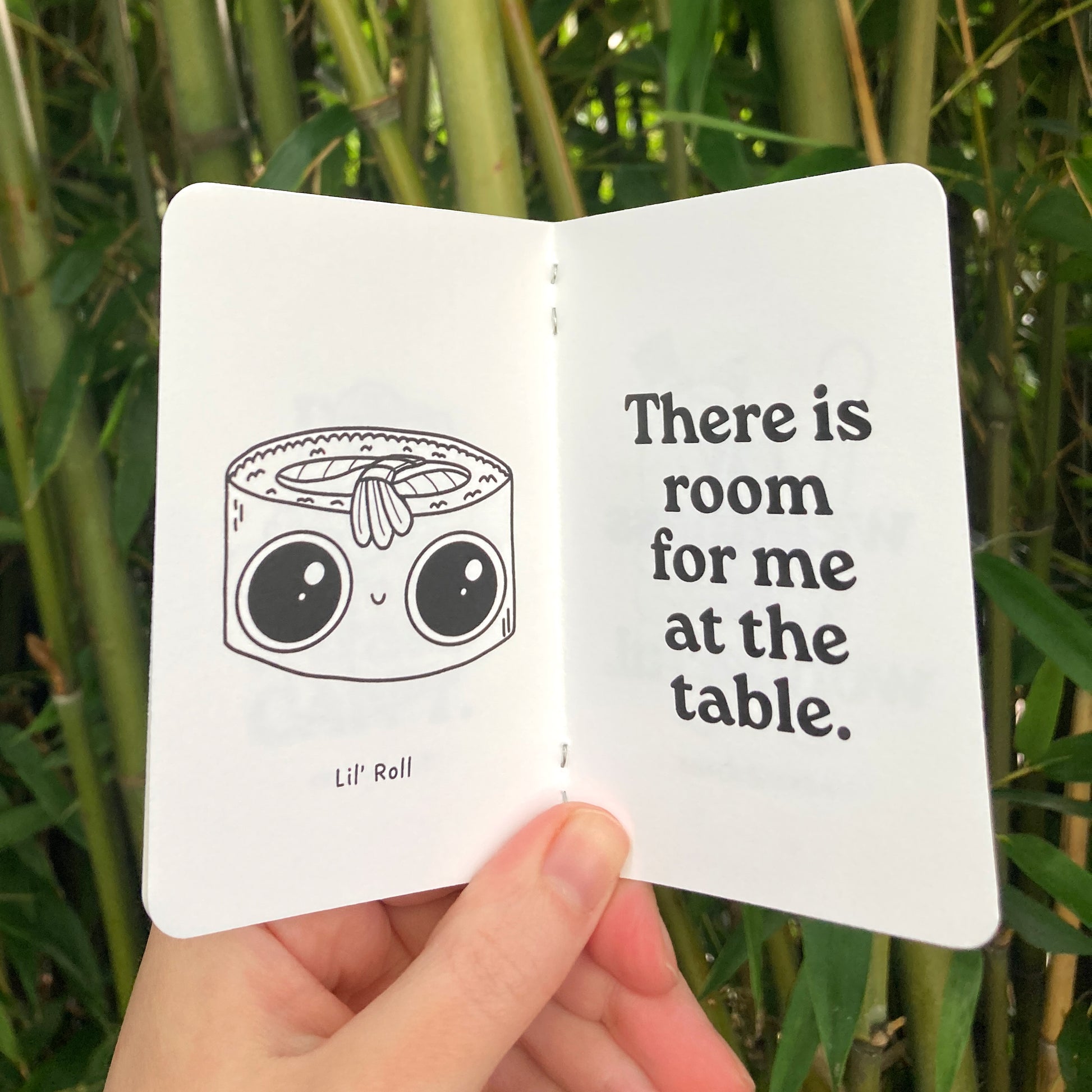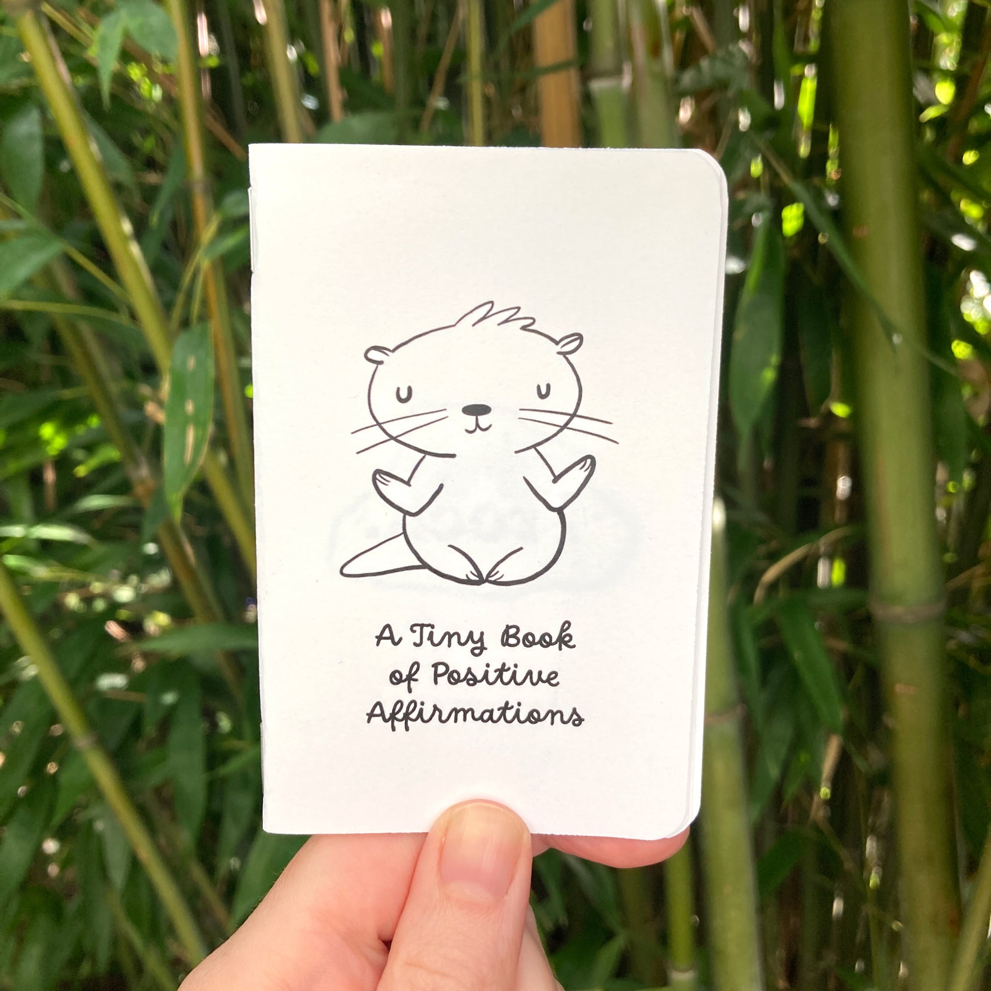 Find a small moment of calm with A Tiny Book of Positive Affirmations. This teeny 16 page zine measures 2.75” x 4.25” and features a variety of Cute K.O. characters paired with positive affirmations to delight and inspire you. The black and white illustrations are printed on thick cardstock so it can double as a tiny coloring book. Rounded corners make it an extra pleasant object to hold. Appropriate for all ages.