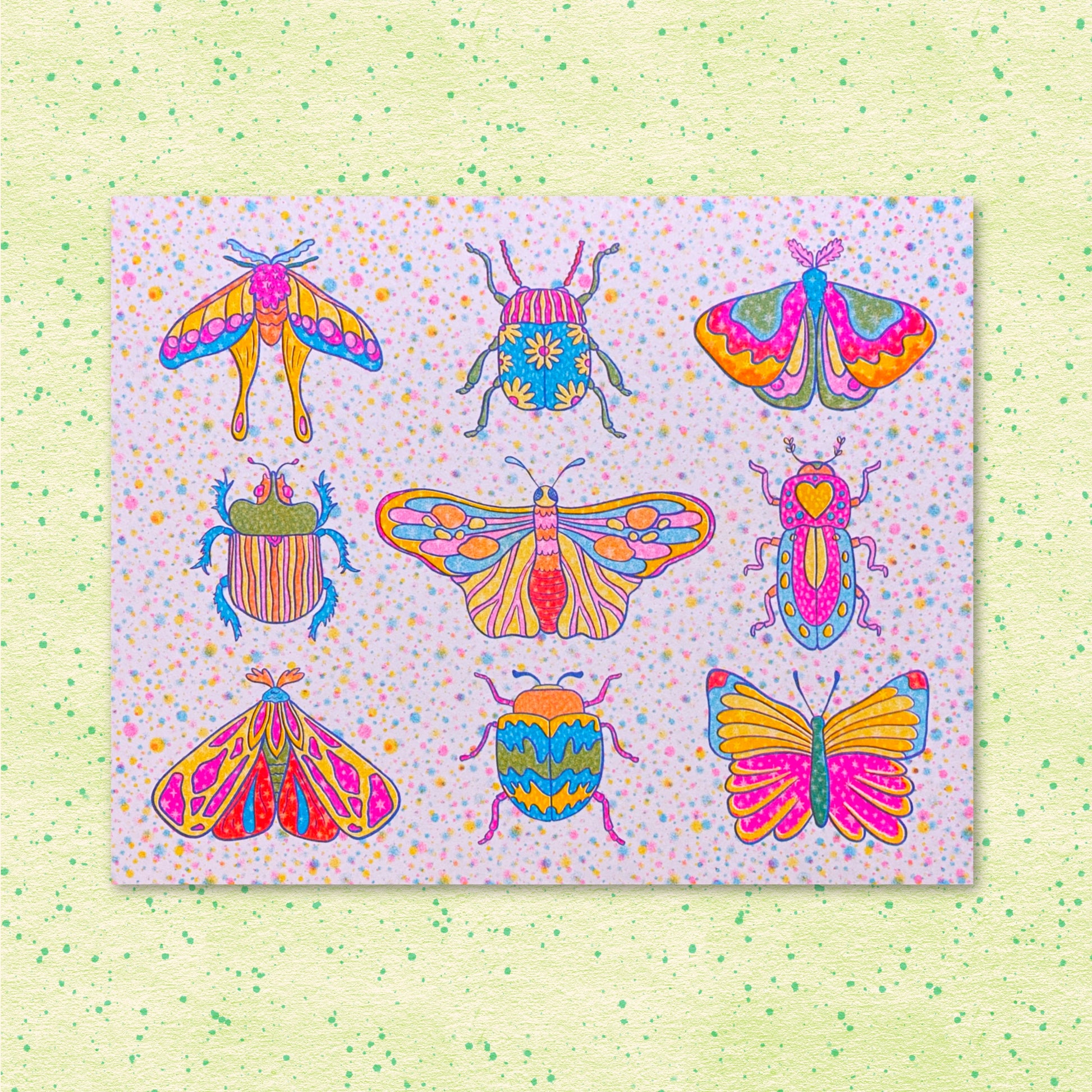 Rainbow Bugs riso print