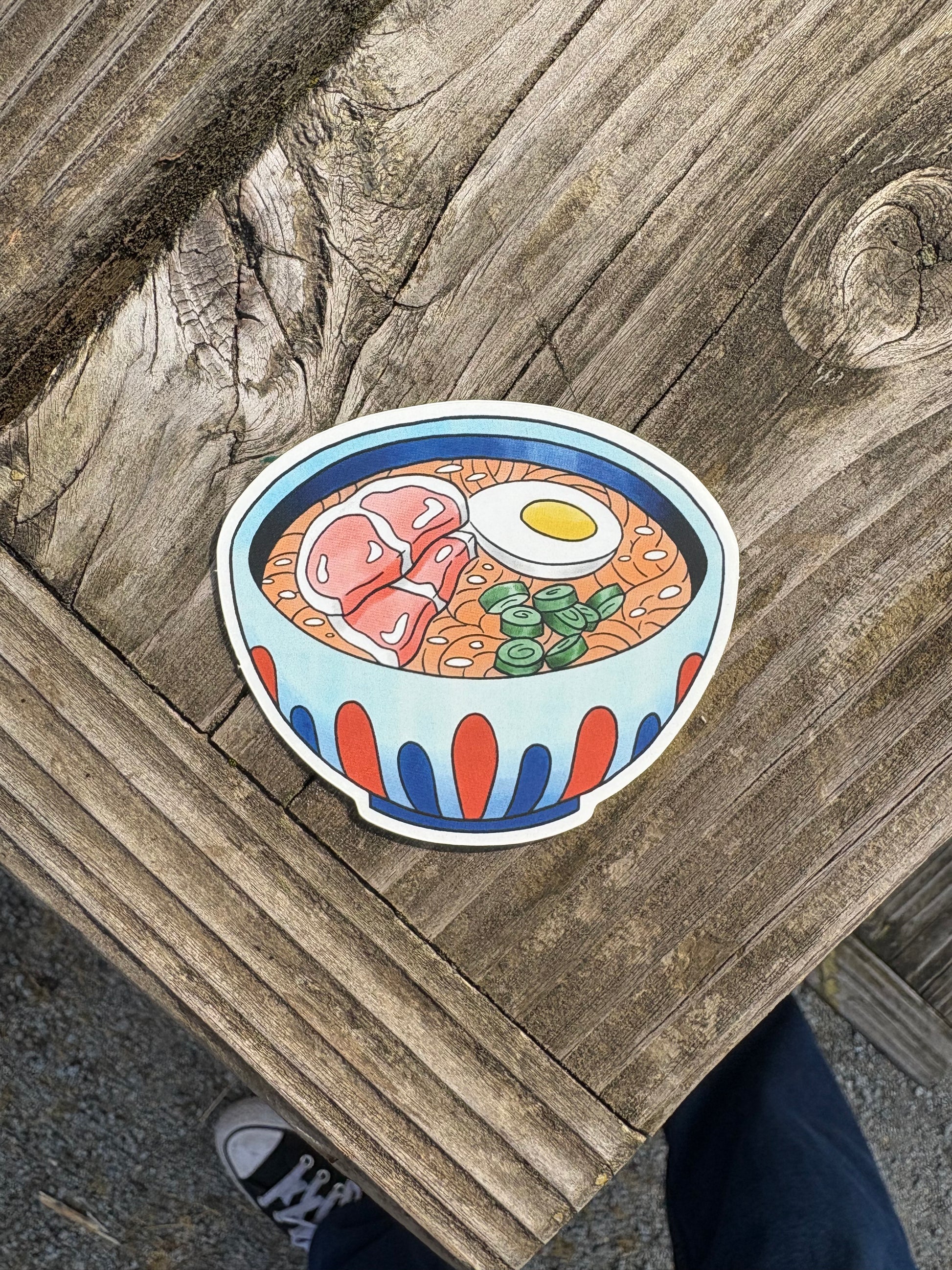 A glossy ramen bowl sticker for people who love fishies in the sea. Approximately 3.5 inches wide x 4 inches tall.