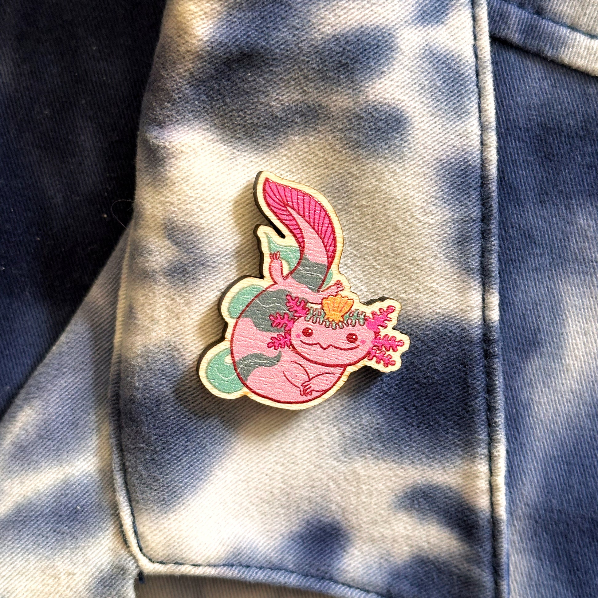 Roxie the Axolotl Wooden Pin