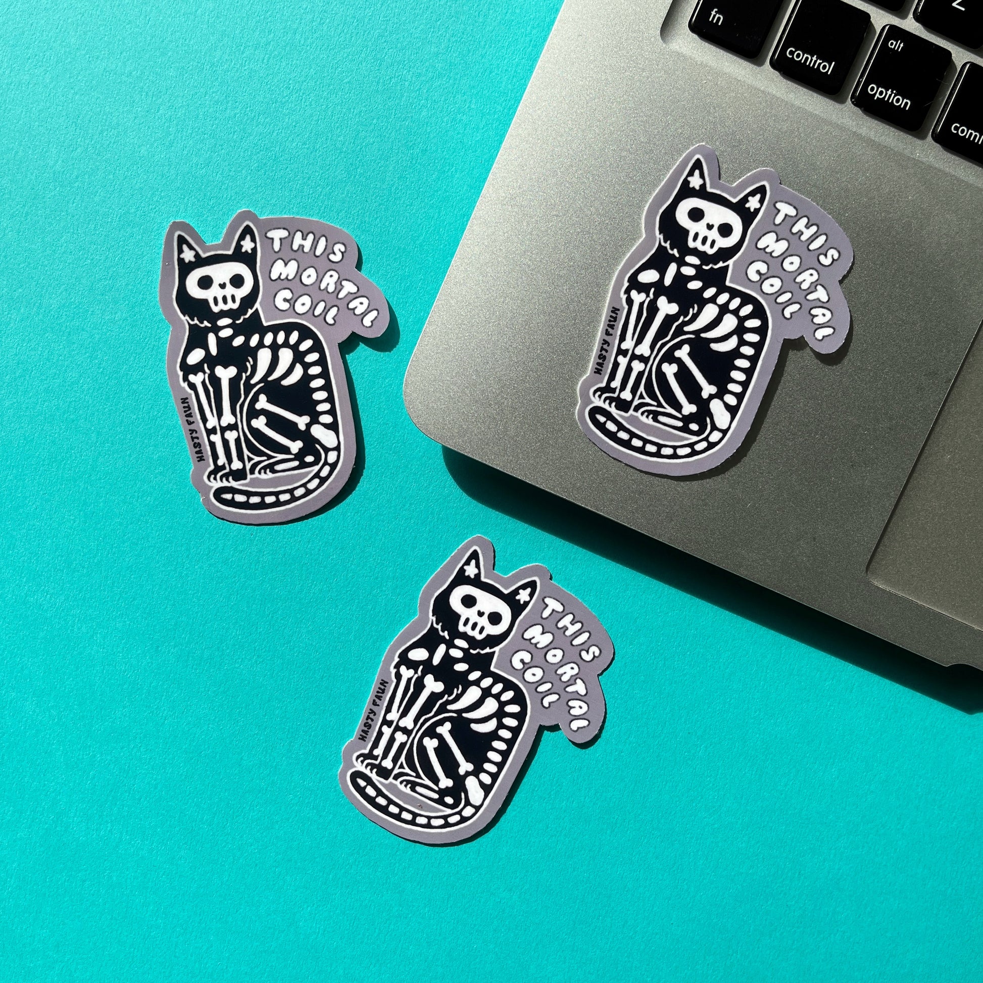 A vinyl-laminated, illustrated sticker. This sticker is waterproof but not recommended for outdoor use. Size: 2" x 2.75"