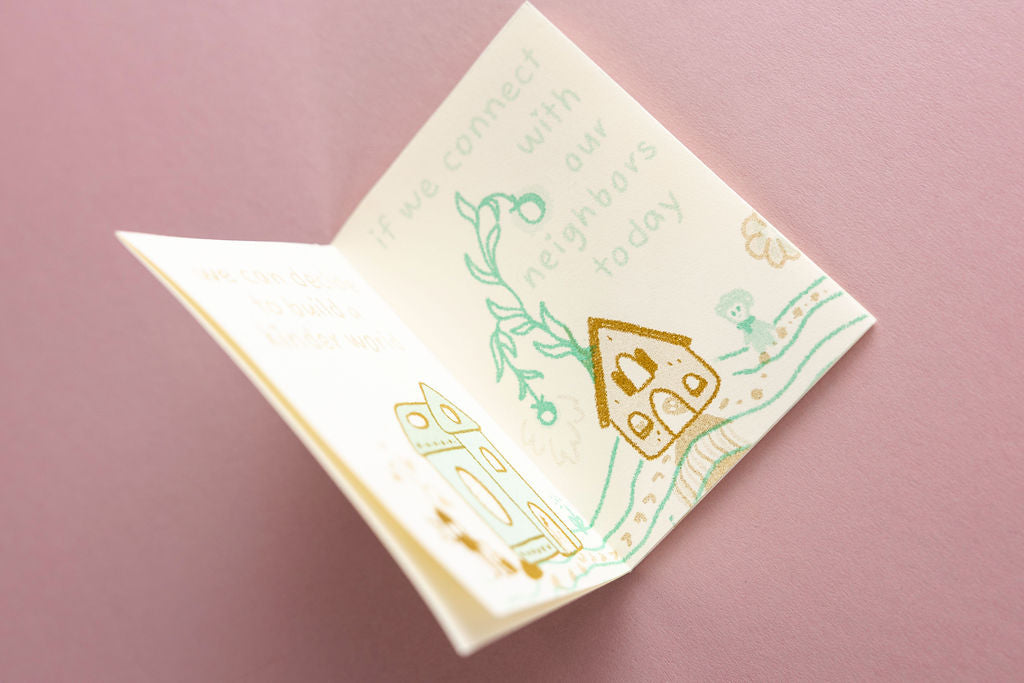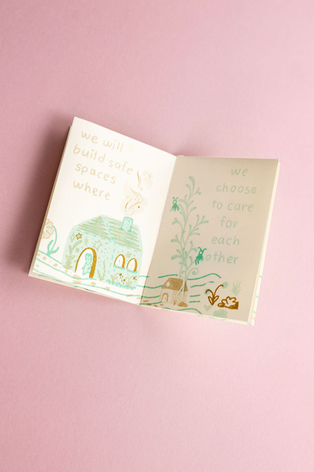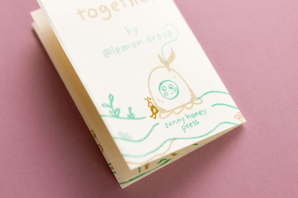 a one page risograph zine printed in sea foam and flat gold by @lemon.droop, printed at @outletpdx