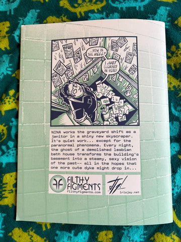 Nina works the graveyard shift as a janitor in a shiny new skyscraper. It's quiet work... except for the paranormal phenomena. Every night, the ghost of a demolished lesbian bat house transforms the building's basement into a steamy, sexy vision of the past-- all in the hopes that one more cute dyke might drop in...